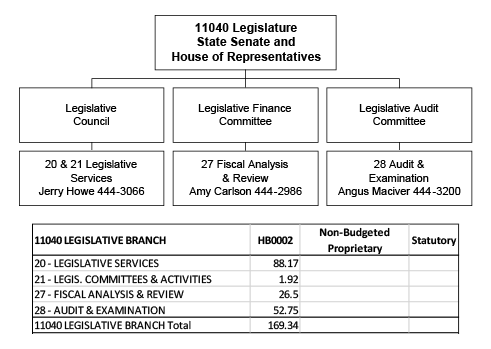 The Constitution of the State of Montana vests the legislator power of state government in the Legislature. The agencies within the Legislative Branch support the Legislature in enacting laws, including those appropriating funding for state government within a balanced budget, and provide accountability for state programs and state spending.
