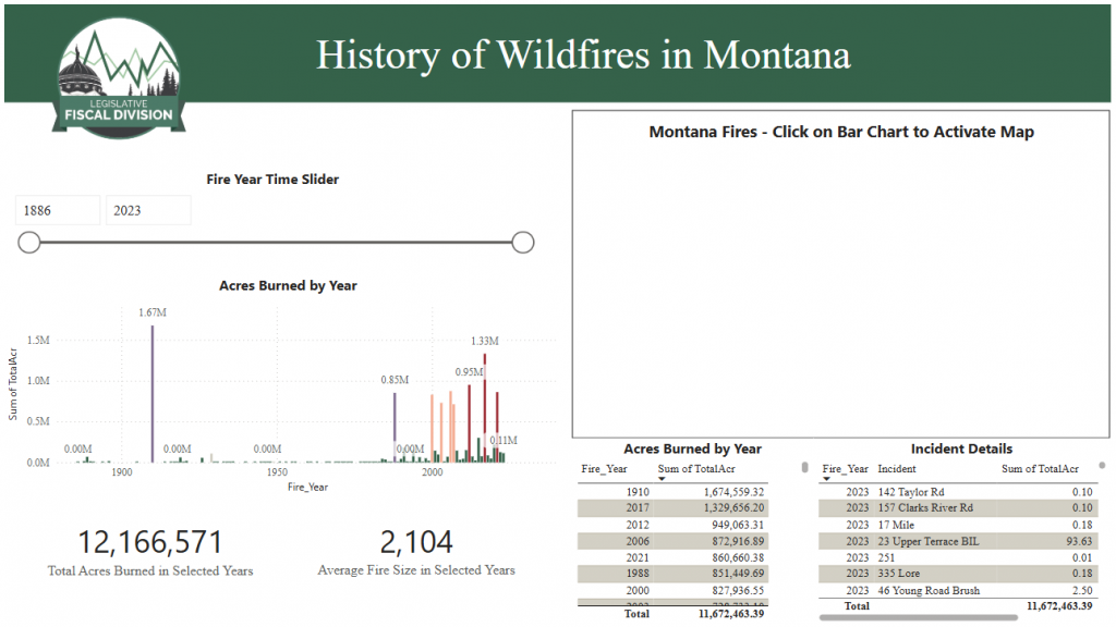 *click the link below this image to access the interactive data tool*» History of Wildfires in Montana Data Tool